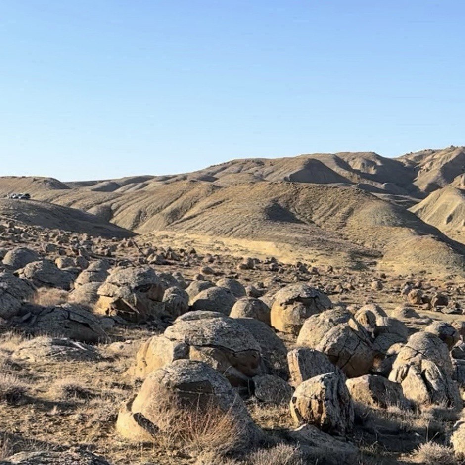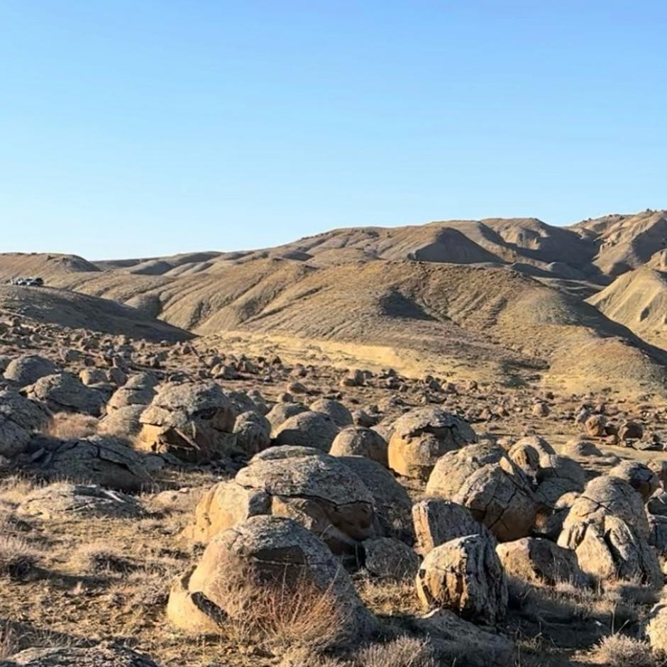 Torysh, the Valley of Balls in Mangystau is a mysterious landscape scattered with perfectly round stone spheres of all sizes across the steppe. This natural wonder sparks curiosity and amazement, offering travelers a chance to walk among one of the world’s most unusual geological formations.
