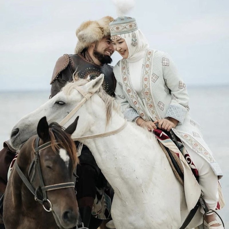 Enjoy a photoshoot in traditional Kazakh clothing.